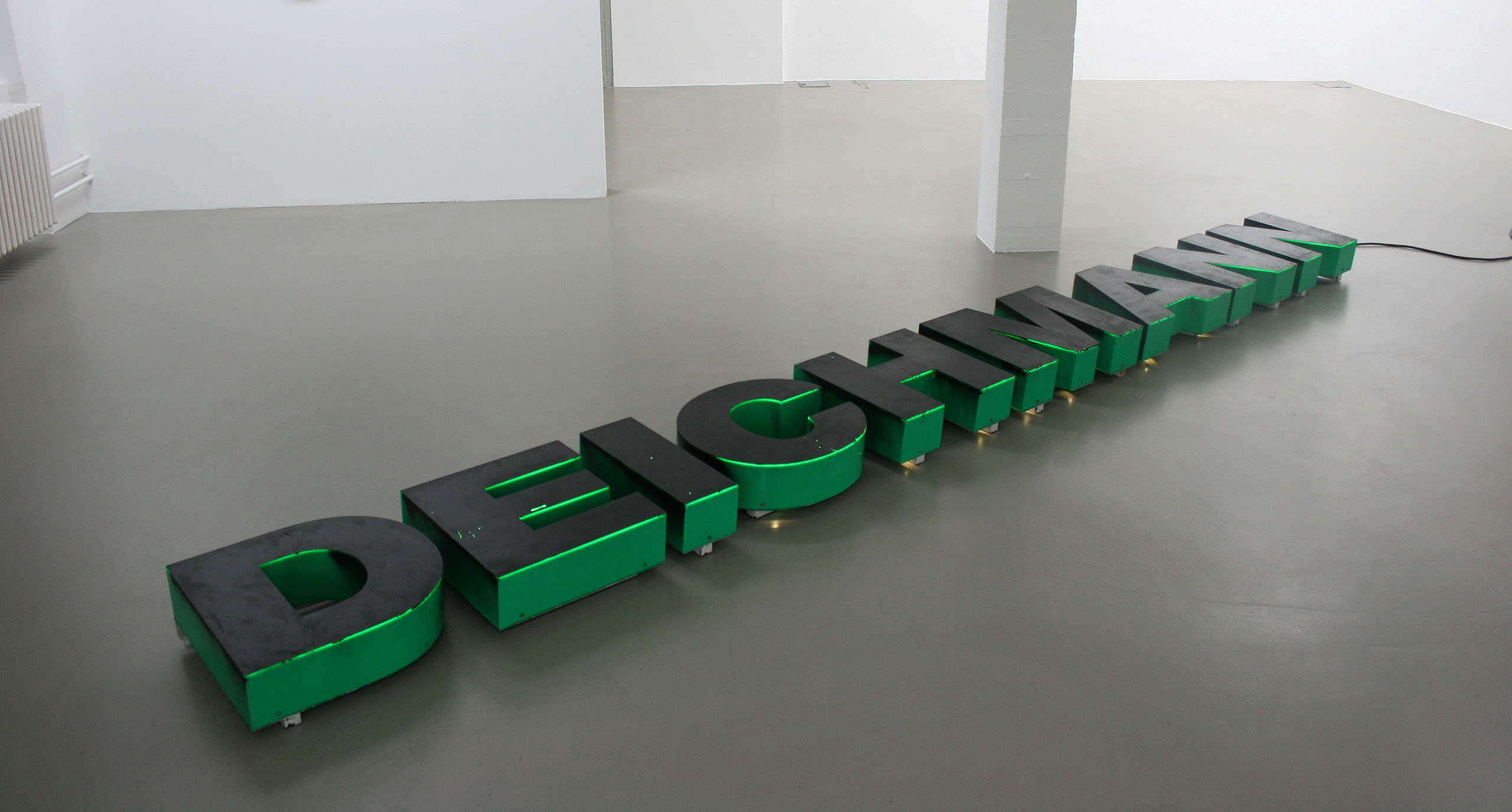 Die Leuchtkörper der Wirtschaftsunternehmen treten somit an die Stelle der eigentlichen künstlerischen Arbeit und sind im Verlauf der Ausstellung direkt dem Zugriff der Öffentlichkeit preisgegeben. Als Sinnbilder für den Ausverkauf des Öffentlichen provozieren sie eine Vielzahl verbaler, aber auch tätlicher Kommentare.
