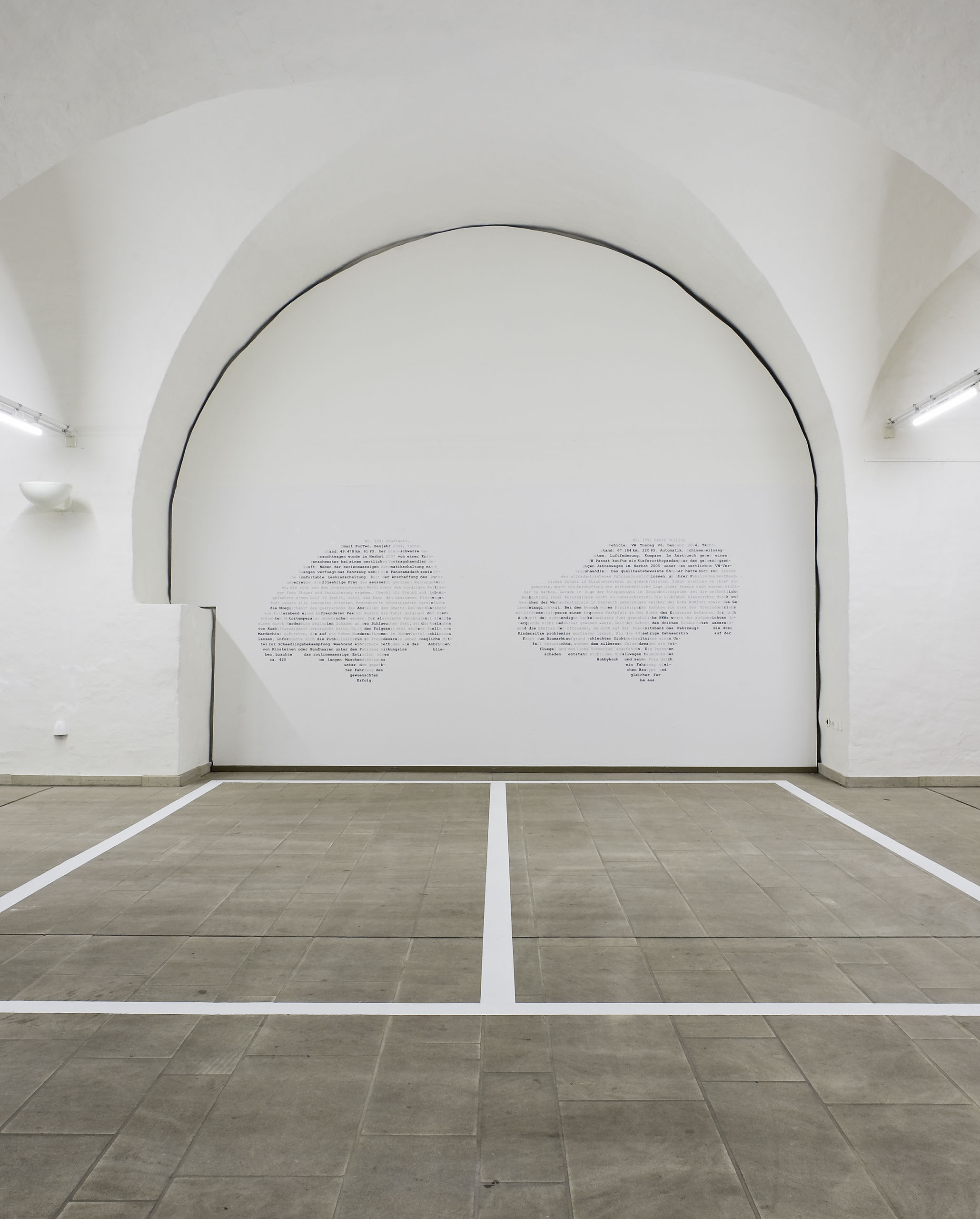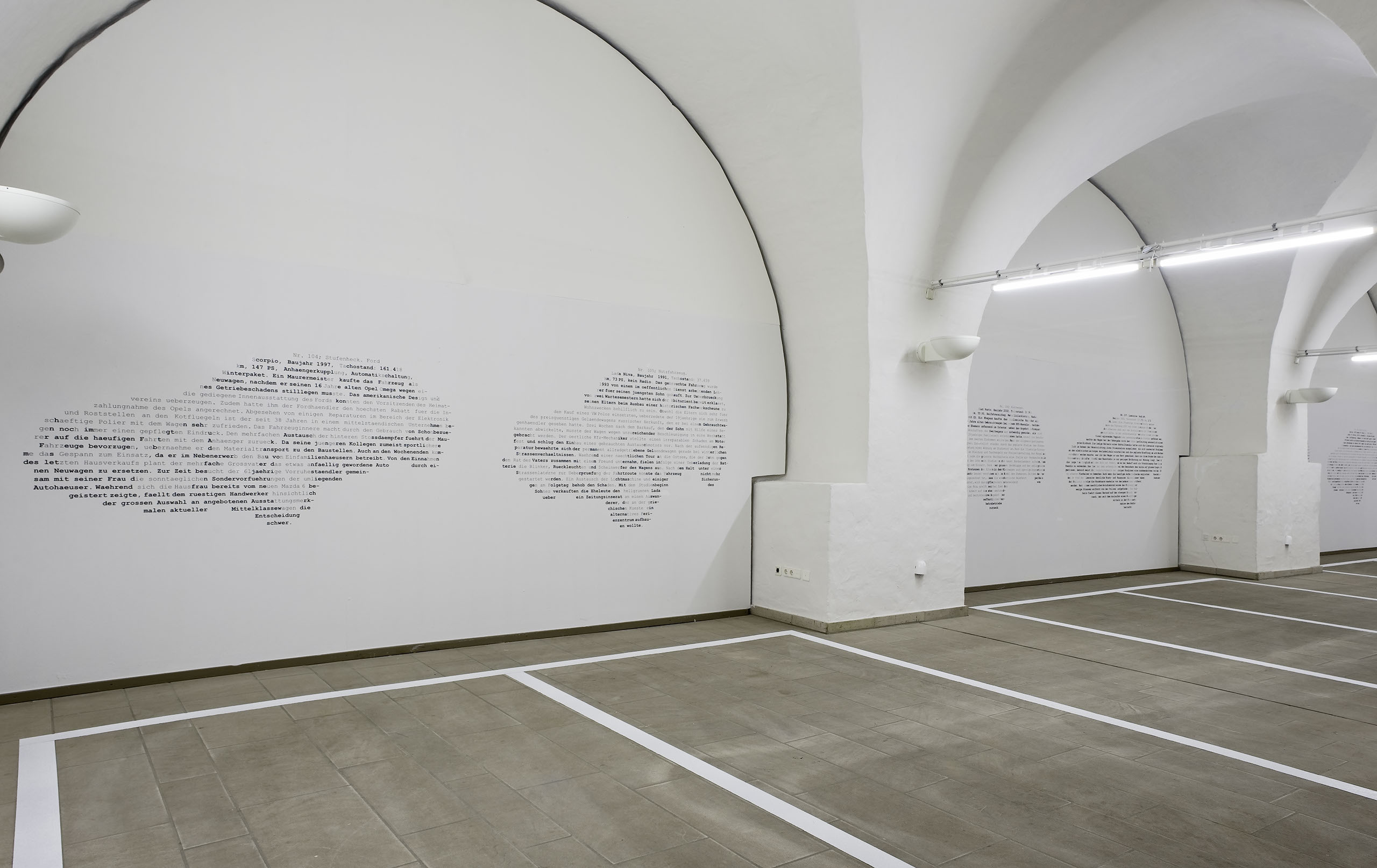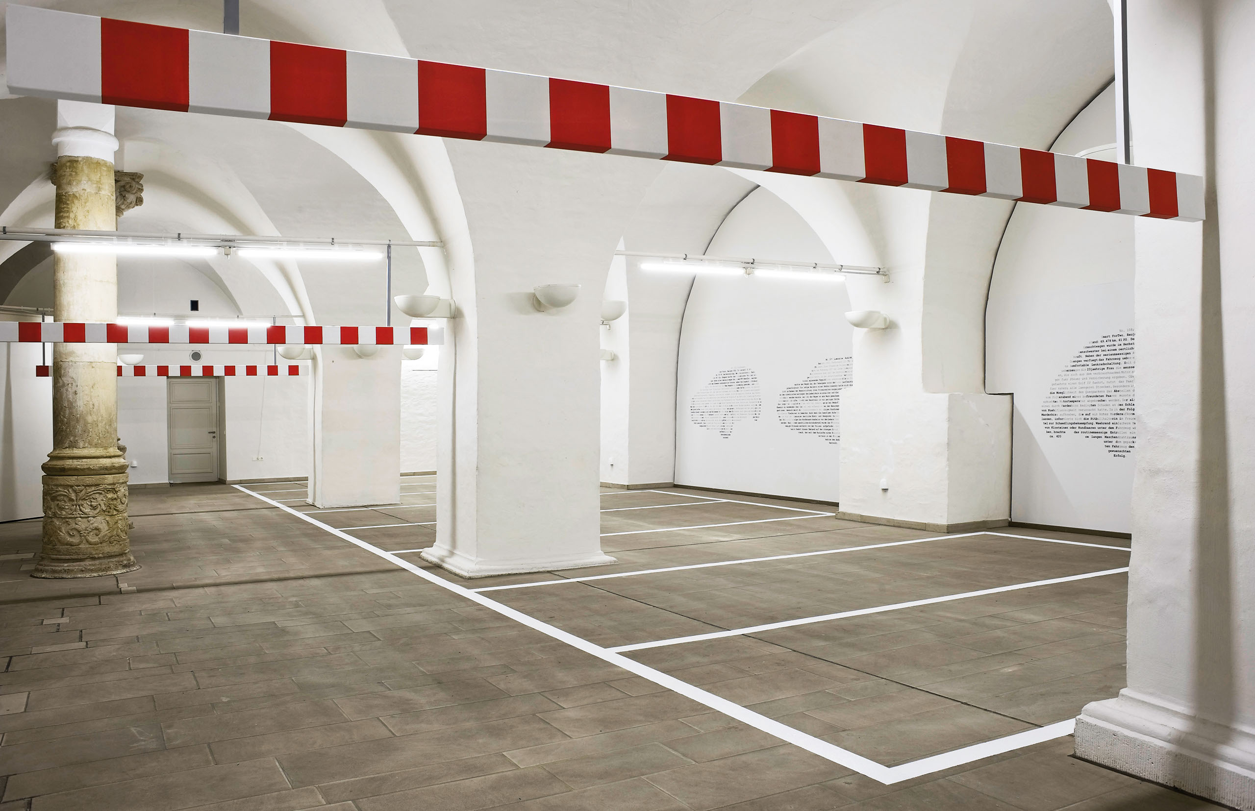 In Anlehnung an Roland Barthes wird die von Pfeilern, Säulen und Nischen geprägte eigenwillige Ausstellungsarchitektur der Gotischen Halle im Schloss Celle zu einem Parkhaus umkodiert. Die Ausstellung Parken greift auf Roland Barthes‘ Text Der neue Citroen aus dem Jahr 1957 zurück, der besagt, dass das Auto heute das genaue Äquivalent der großen gotischen Kathedralen ist.Neben einer Bodenarbeit, die sechs Parkbuchten in den Raum zeichnet, geben rotweiß gestreifte Höhenbegrenzungen sowie eine Lichtinstallation aus Leuchtstoffröhren dem Raum eine neue Struktur. Der so durch die Ausstattungsmerkmale von Parkhäusern umfunktionierte Ausstellungsraum wird zum Sockel für eine Reihe von an der Wand angebrachten Automobil-Portraits, die in großformatigen Textbildern in den Parkbuchten zu finden sind und die protokollartig die Beziehung zwischen einem Auto und seinem Nutzer beschreiben.