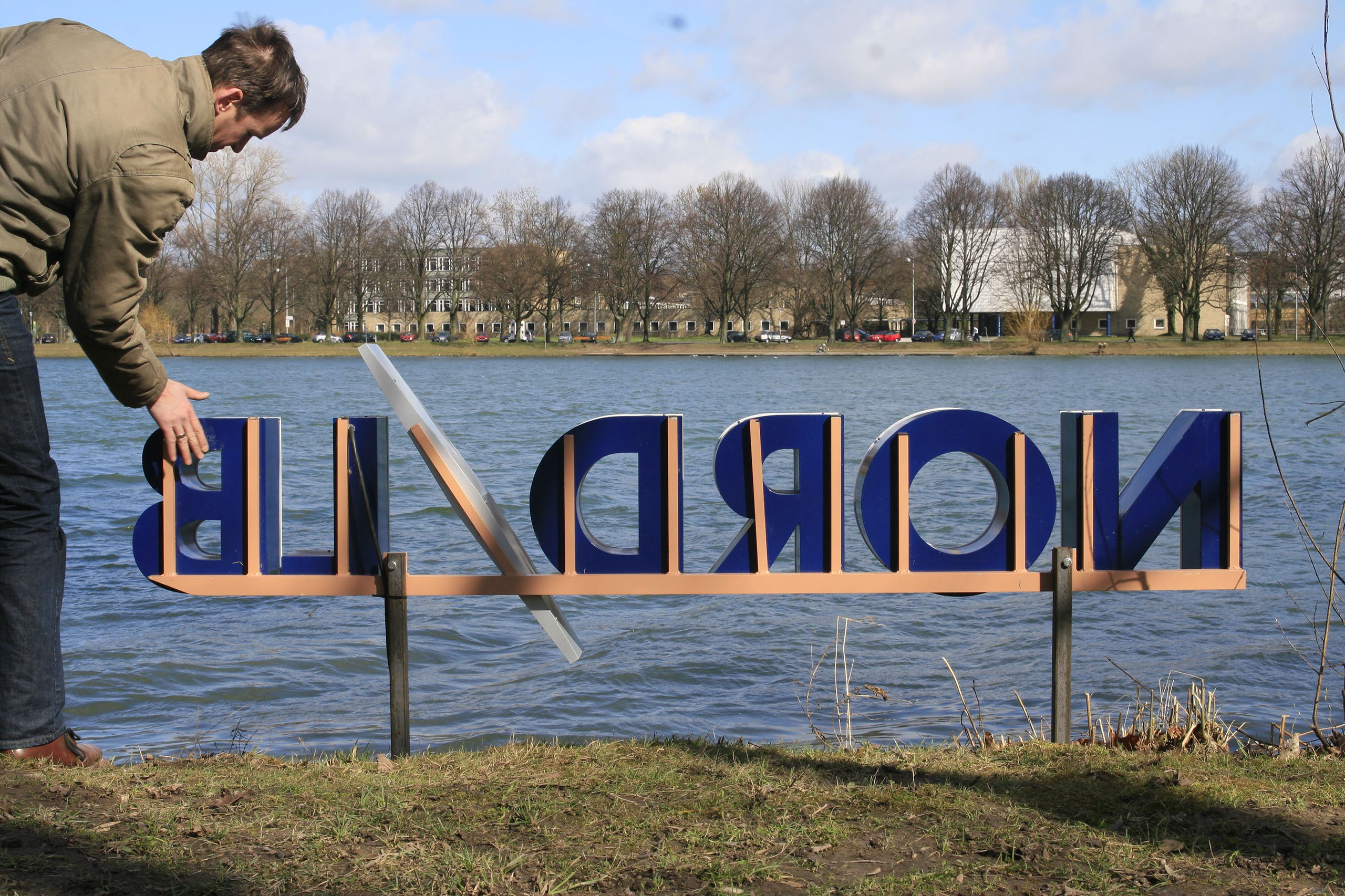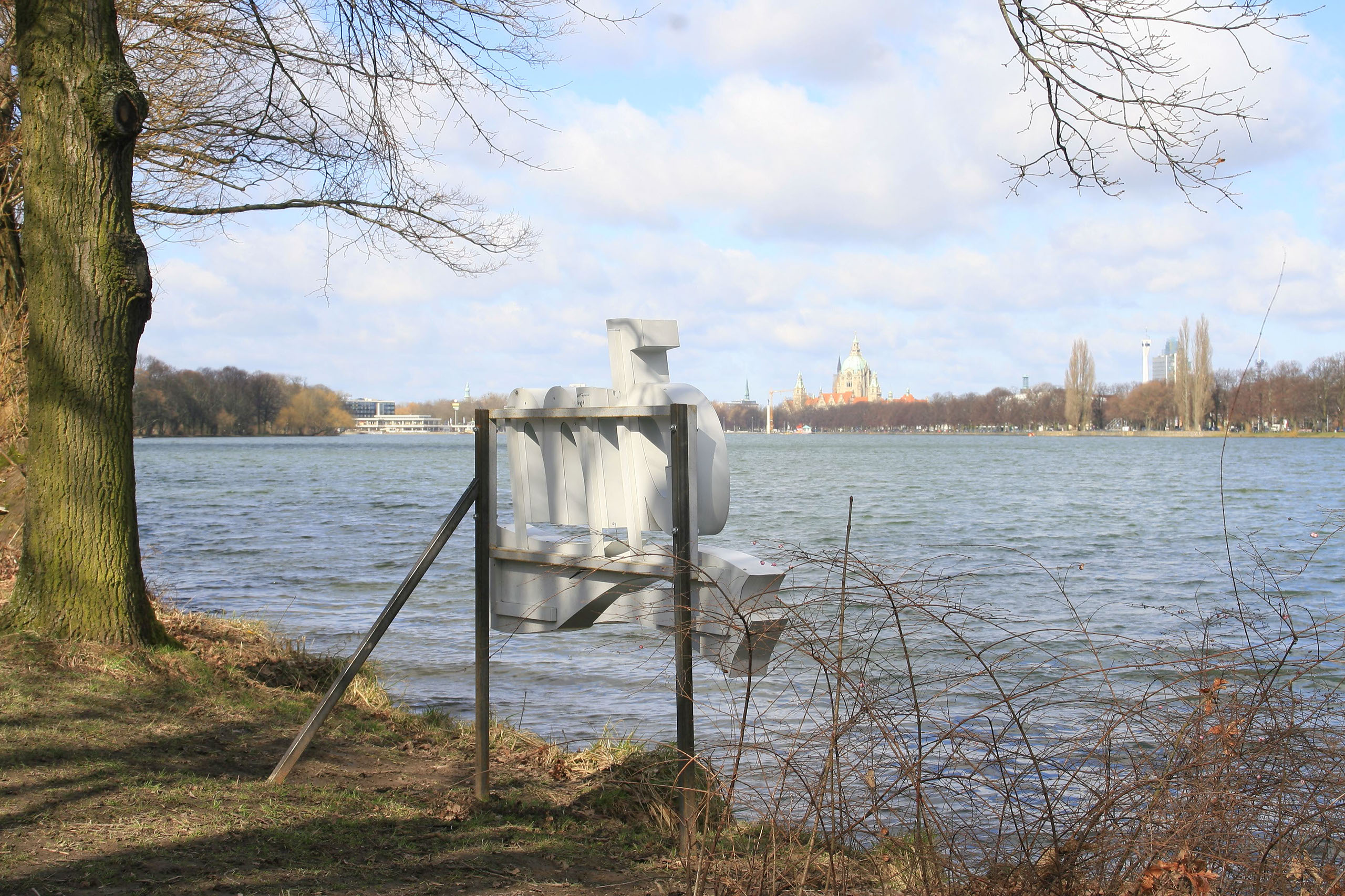 Im Rahmen eines Ausstellungsprojektes rund um den Maschsee in Hannover werden im Uferbereich Leuchtreklamen aufgestellt.